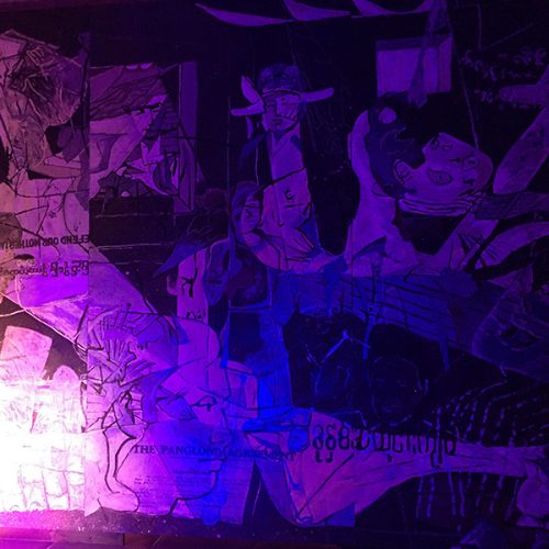 A painting of 2.4 x 8.40 m. which tells the tales and life stories of the little people of different origins, dispersed their habitats throughout the banks of Irrawaddy River. It is a rhythmic showcase of the history of people’s pain conflated with the history of political conflict in the country that is considered to have one of the longest historical roots in Southeast Asia.