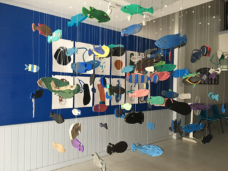 In this exhibition, Narongyot has tried to spotlight the evidence of what is happening to the aquatic life by assembling the waste materials that he collected from the sea. The flock of rubber fish represents the inevitable drifting of the food chain in marine ecosystem where people consume the fish that were forced to eat sea debris left by human. These remnants perplex the sea dwelling creatures as they can no longer recognize which is food for them and which is not. They are nibbling on the man-made materials that used to kill their ancestors over generations. In the end the waves will bring back the evidences that we once dumped into it. Not to judge us. But to show us the truth.